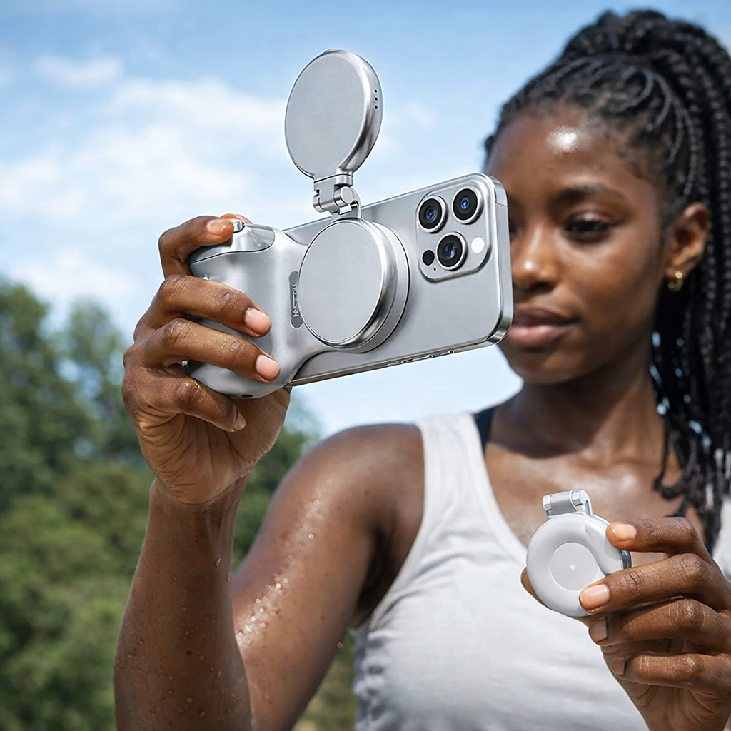 - Steady your shots: Use the grip to stabilize your phone for professional-looking photos and videos without a tripod